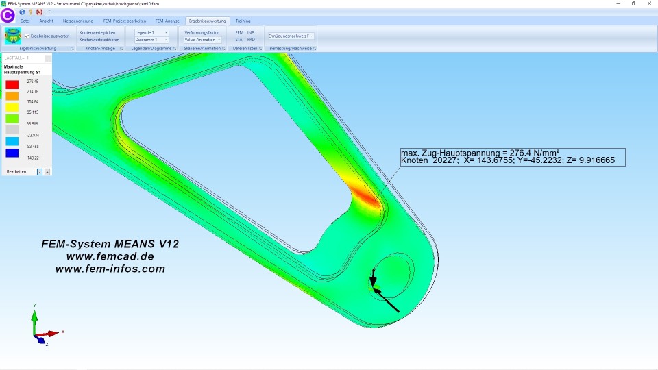Ermüdungsbruch einer Fahrradkurbel nach 5000 Lastfällen.